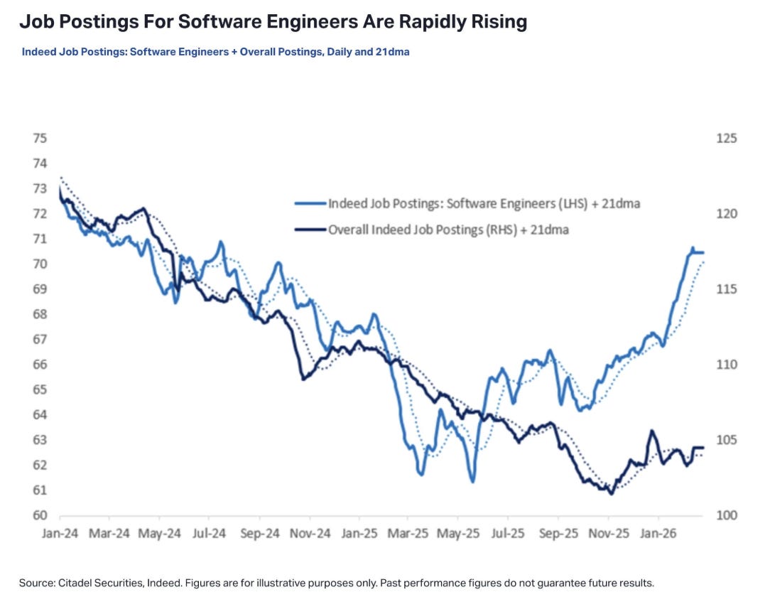 Plus, despite the skepticism and Citrini Research’s notorious midnight tale of a “Global Intelligence Crisis”, job postings for software engineers are surging.