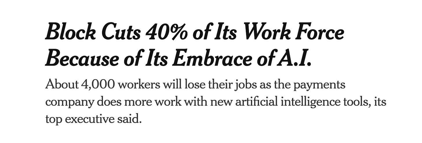 The news that Block is cutting 40% of its workforce is being framed by many, especially on X and LinkedIn, as the latest domino to fall in the “AI is coming for everything” narrative.